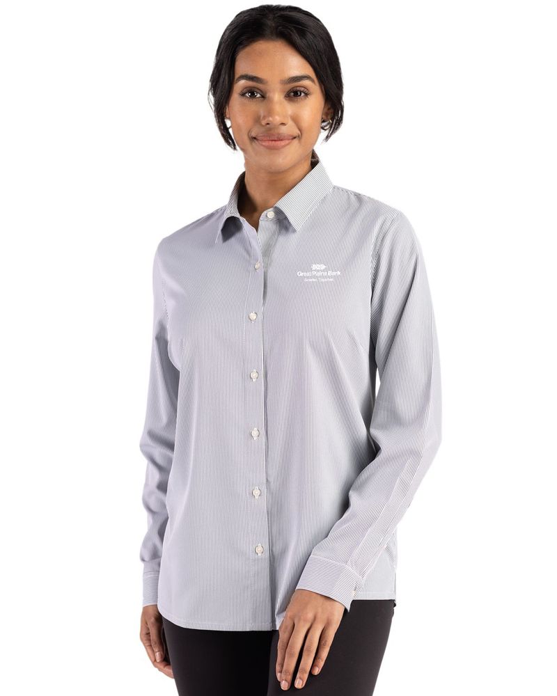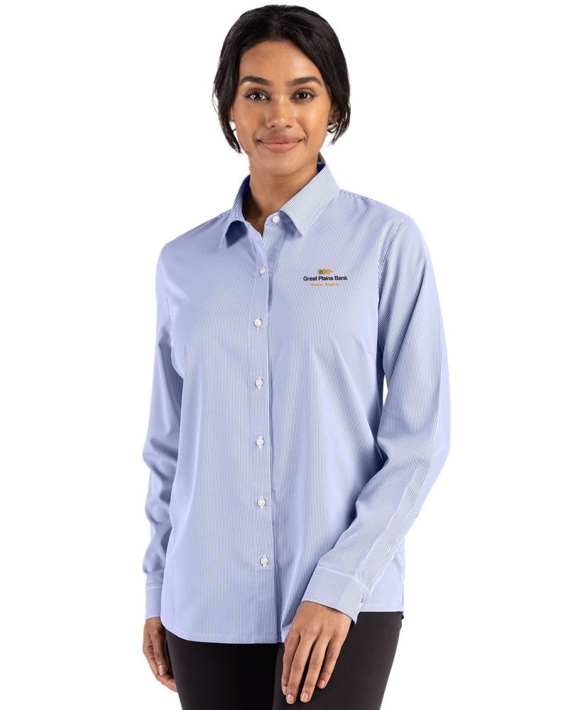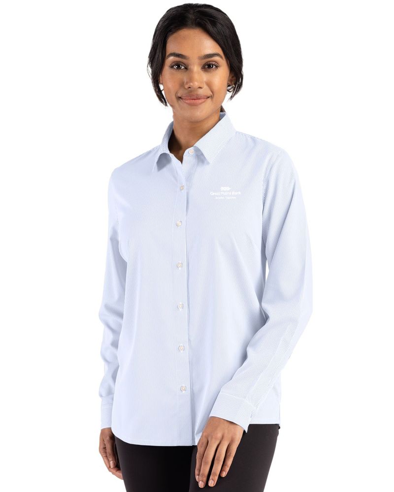 Cutter & Buck Skyline Epic Confidence Recycled Pinstripe Womens Long Sleeve Dress Shirt