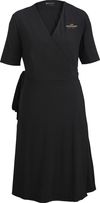 sku: 9977A tie-waist wrap dress should be not only a staple dress in every woman’s closet but also part of any hospitality and administration uniform program. This dress features a flattering v-neckline, midilength with elbow-length sleeves. The fabrication is a soft recycled polyester and spandex knit and has 2 side seam pockets.