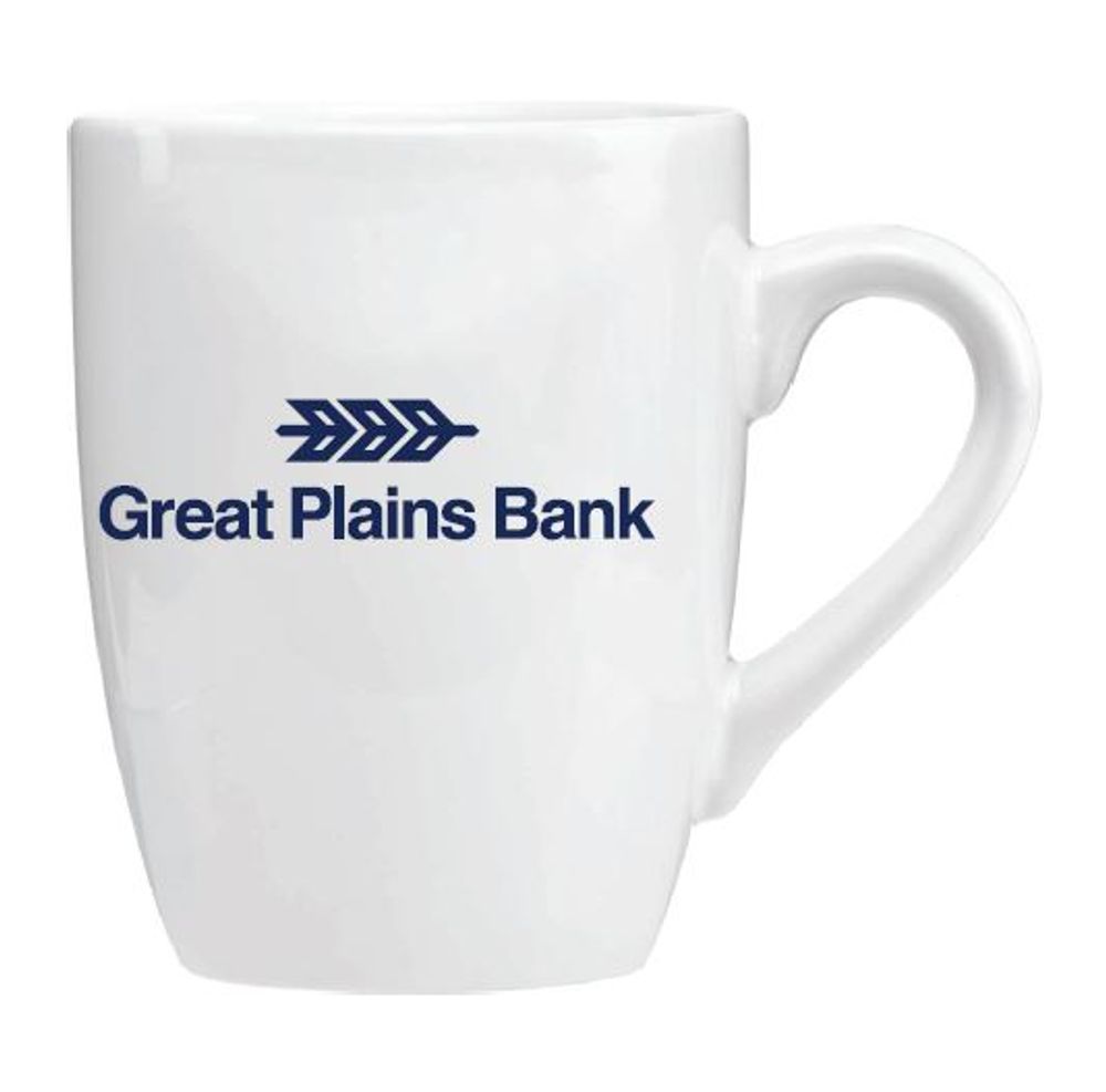 sku: MUKOur 14 oz. white ceramic bistro mug features a large handle and generous capacity that will help make this mug an everyday favorite for your clients. Your silkscreened logo will be there to deliver your branding message each and every day. Hand wash only.